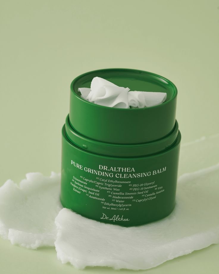 Pure Grinding Cleansing Balm, formulated with 14 essential ingredients, offers a gentle cleansing experience for sensitive skin.