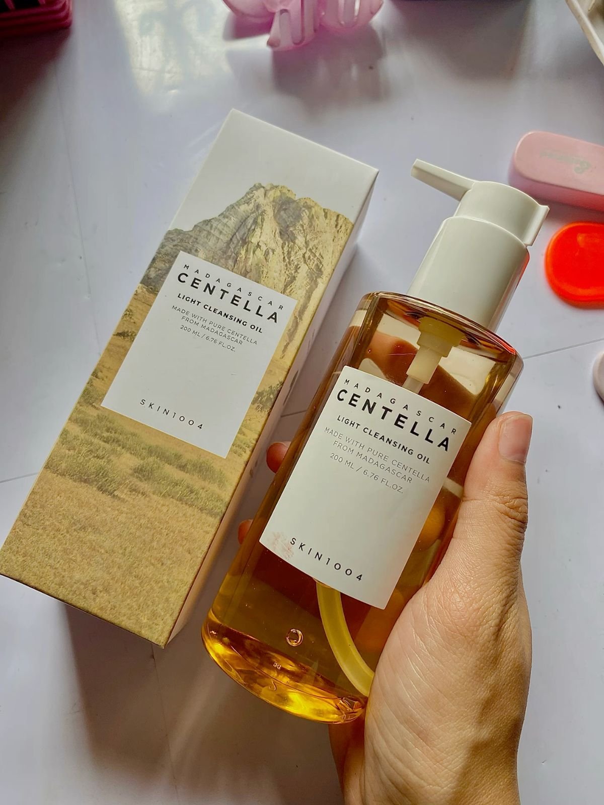 SKIN1004 Madagascar Centella Light Cleansing Oil is a gentle yet effective facial cleanser that removes makeup, sunscreen, and impurities while keeping the skin hydrated and calm. Its lightweight, water-based formula transforms into a milky emulsion when in contact with water, rinsing off cleanly without clogging pores. Enriched with Centella Asiatica extract from Madagascar and six plant-derived oils—including jojoba and olive oil—this cleansing oil soothes, nourishes, and protects the skin, making it ideal for sensitive and acne-prone skin.