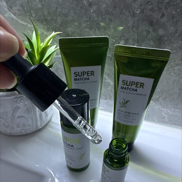 A bi-phase toner with 83% matcha water that exfoliates and tightens pores while controlling excess oil.